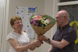 Reactie van Jan: Het was een fantastische avond, niet alleen voor mij waarin ik een mooi cadeau kreeg voor mijn vele werk in de commissie, en voor de mooie bos bloemen die Corrie ontving. Hartelijk dank aan iedereen.