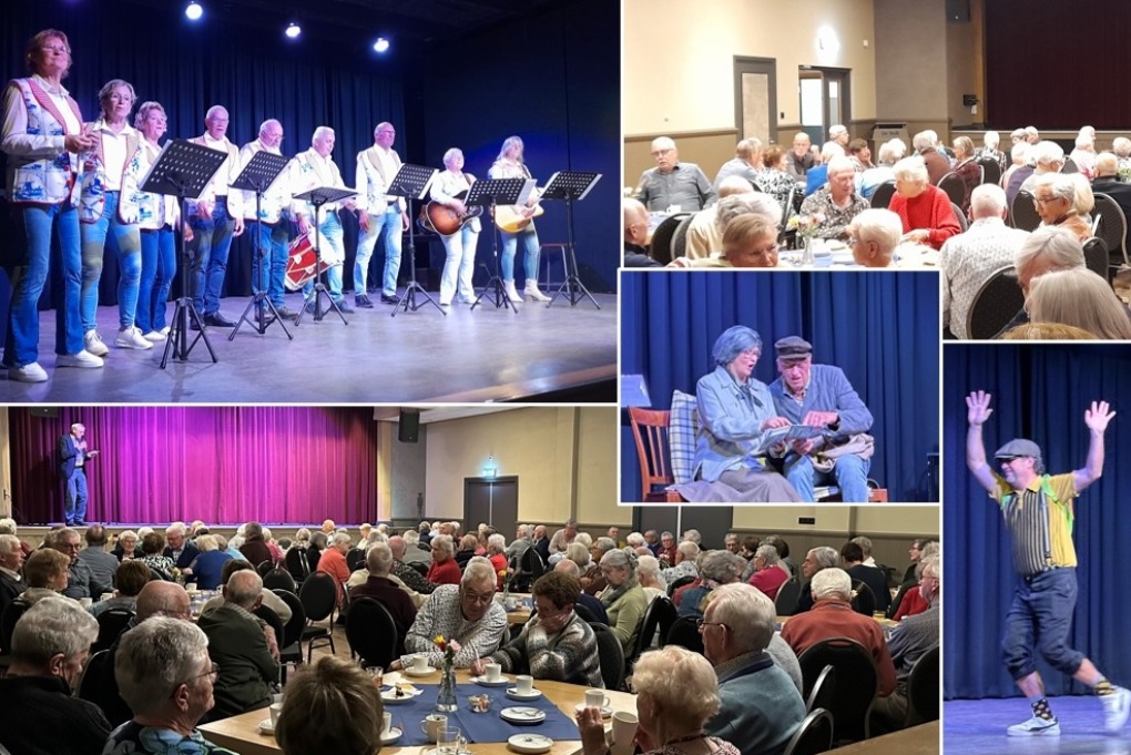 Ruim 135 seniorenleden genoten van een gezellige ontspanningsavond op vrijdag 18 oktober. De bijeenkomst begon met gebak en koffie waarna het variétégedeelte van start ging. Dit keer was de hoofdmoot een voorstelling door de muziekgroep ‘Witte Gé da Nog’. Zij brachten een gevarieerd programma met luisterliedjes, sketches en meezingers. De aanwezigen genoten volop van dit optreden en er was dan ook veel waardering voor deze Vorstenbossche artiesten die met een glimlach de humor van vroeger (en nu) ten tonelen brachten.