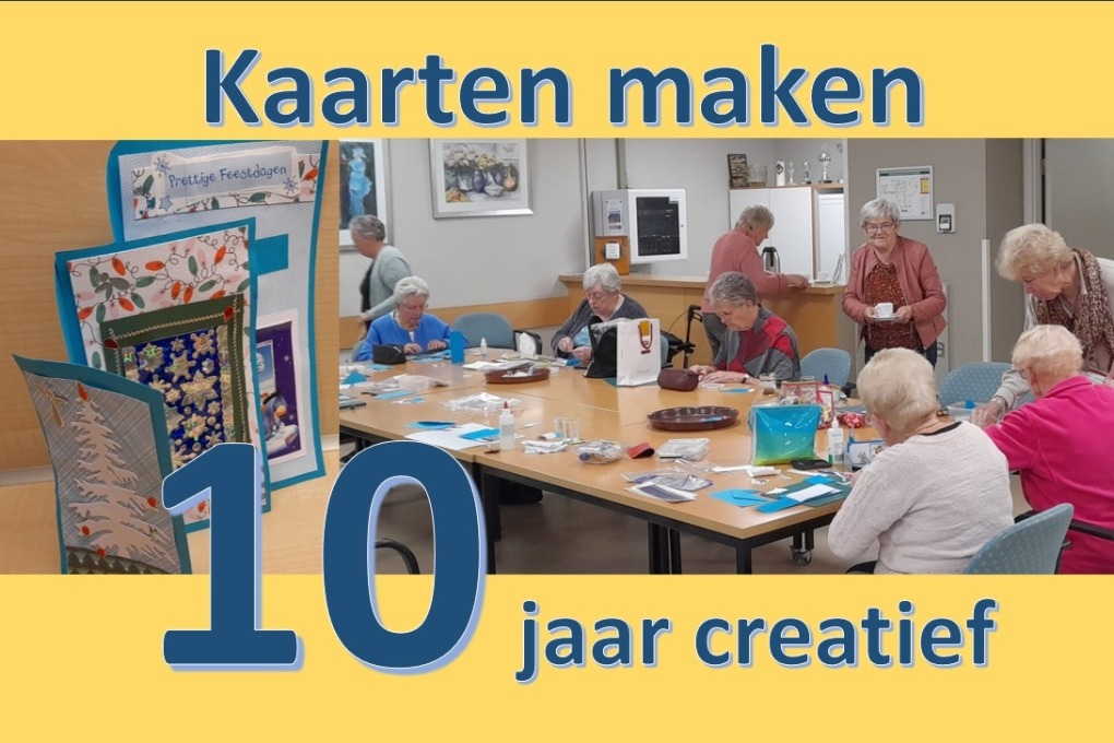 In 2014 zijn een aantal van onze leden gestart met een workshop mooie kaarten maken. Onder leiding van Coby Dominicus en Claartje van Dijk is die groep nu nog steeds actief. Er zijn onder de deelnemers wel wat wisselingen, maar het groepje blijft door de tijd toch vrij constant. Al 10 jaar lang levert dit steeds weer mooie creaties op.