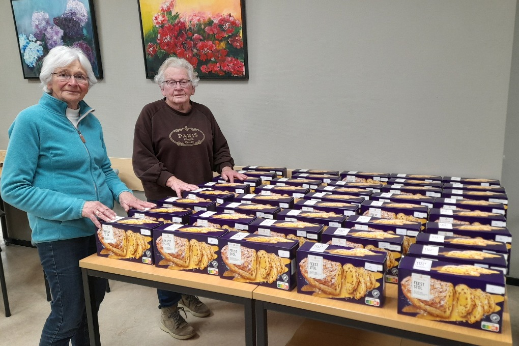 Op foto: De bestuursleden Nelly en Diny hebben de inkopen alvast klaargezet.